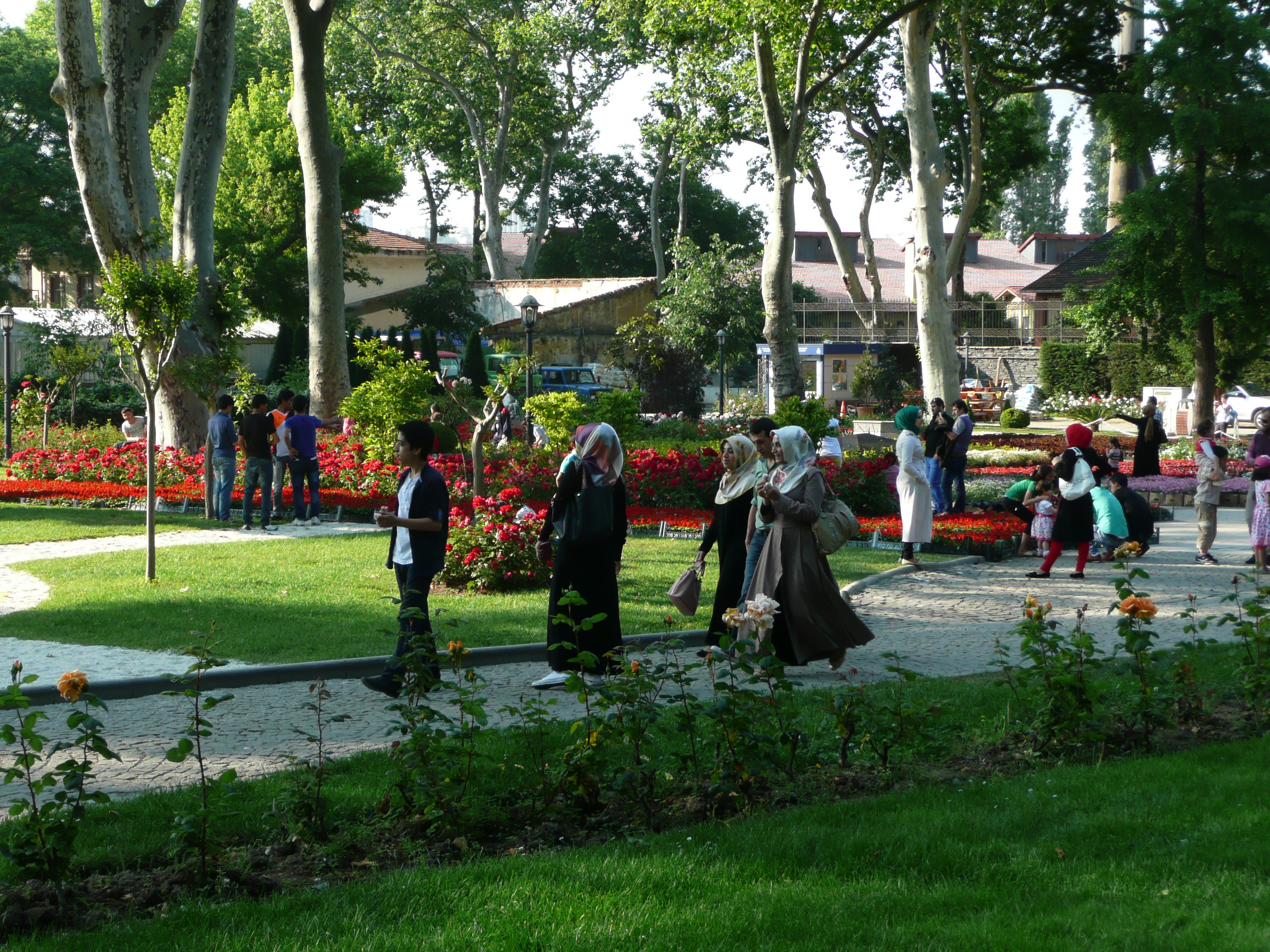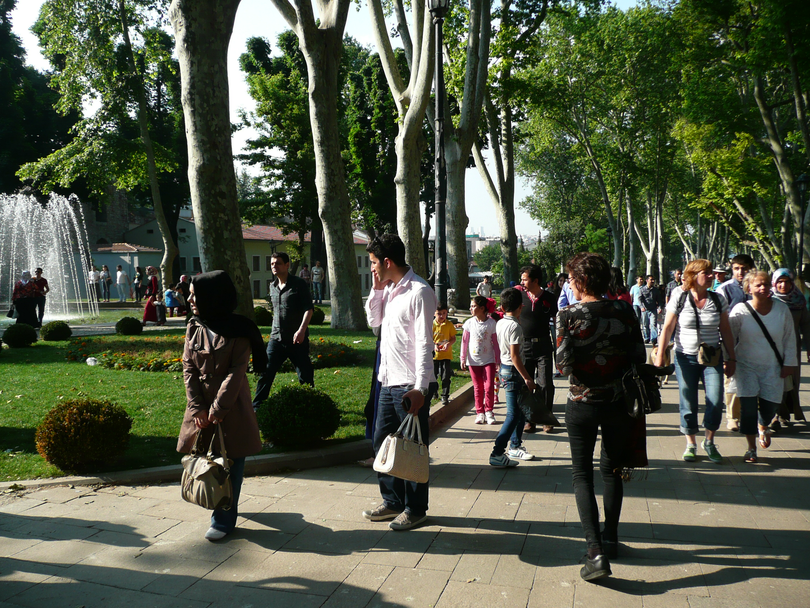 Muhajibabes in beautiful scarves (the Great Bazaar is chocka with wonderful day cashmeres and pashminas – there is no excuse for drabness). “Mandy, Mother of Brian” in vast and bulbous black. Ladies in full cover, some dark and exotic, and mysteriously alluring, and others that make me think that they are doing us all a favour (non-PC, but there you go). I just saw a clown with green hair and a red nose. Fashionistas and paysans. And the many, many ordinary folk, old, young, and babes in arms, enjoying the weekend. All oblivious to the feral dogs and cats that roam through these parts.
