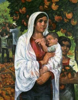 And, celebrating the circle of life from cradle to grave and the rhythm of the seasons, there are scenes of harvest time and the gathering of the fruits of the fields and the orchards. There are grains and vegetable, olives, and water melons, apricots and pomegranates, figs and grapes, and the oranges for which Palestine was long famous.