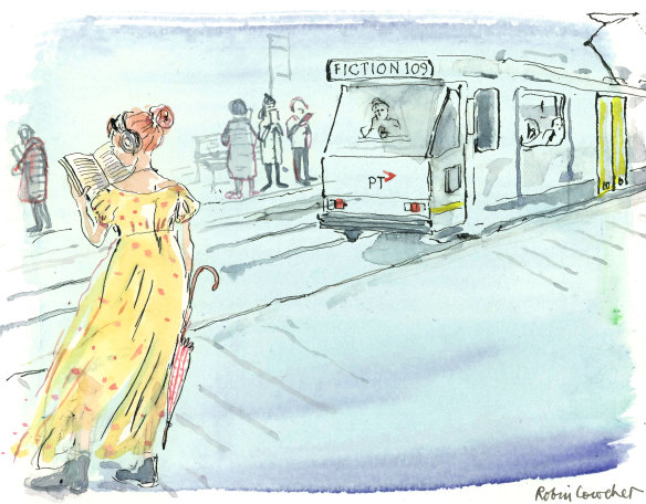Australia is about to re-enter the pre-Gutenberg darkness. This young woman on the 109, turning a page hurriedly, greedy to keep the scene running, is the last reader. She is a throwback, perhaps a Morris Dancer on weekends, maybe a pigeon-fancier. Any minute she’ll start singing a hymn or powdering her nose. Her fellow commuters are unsettled because reading a book has become a small piety, a way of claiming intellectual and cultural superiority over the phone-fed drones around you. The sooner she reaches her stop the better they’ll feel.