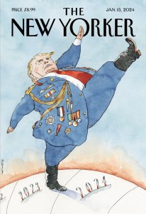 Artist Barry Blitt’s “Back to the Future.” In another year of political chaos, he “looks forward to depicting the pageantry, solemnity, and awe of the upcoming Presidential election”.
