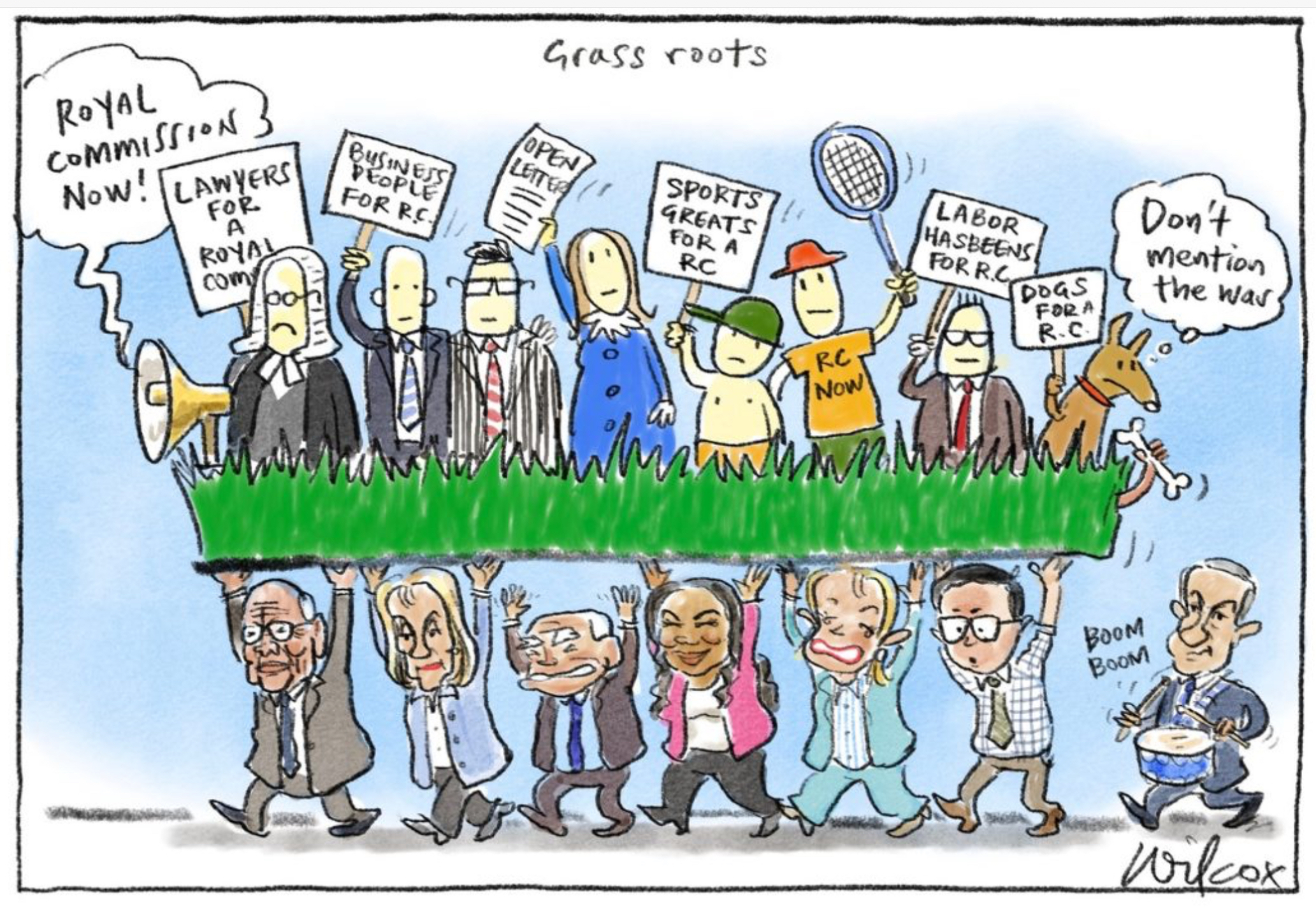 Critics argued that the image revived a familiar and corrosive trope: the suggestion of hidden Jewish influence directing political life from the shadows. The cartoon, titled Grass roots, depicts a cluster of foolish-looking figures demanding a royal commission. They are presumably meant to represent the families of the dead, as well as lawyers, judges, business leaders and sporting figures who had urged government action long before the Prime Minister concluded that continued indifference might stain his legacy. When he finally announced a royal commission—expanded, without explanation, to include the elastic phrase “social cohesion”—no journalist paused to ask what that addition was meant to clarify.